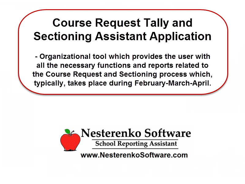 The main functions of the application allow the user to import the current Course Request Tally data as